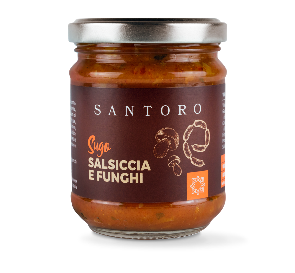 La salsiccia al ceppo di Linguaglossa, presidio Slow Food, e i funghi selezionati grazie all’esperienza Santoro. Sono gli ingredienti che rendono unico questo sfizioso sugo pronto, ispirato alla cucina contadina etnea. A noi piace come condimento per pasta fresca come le tagliatelle.